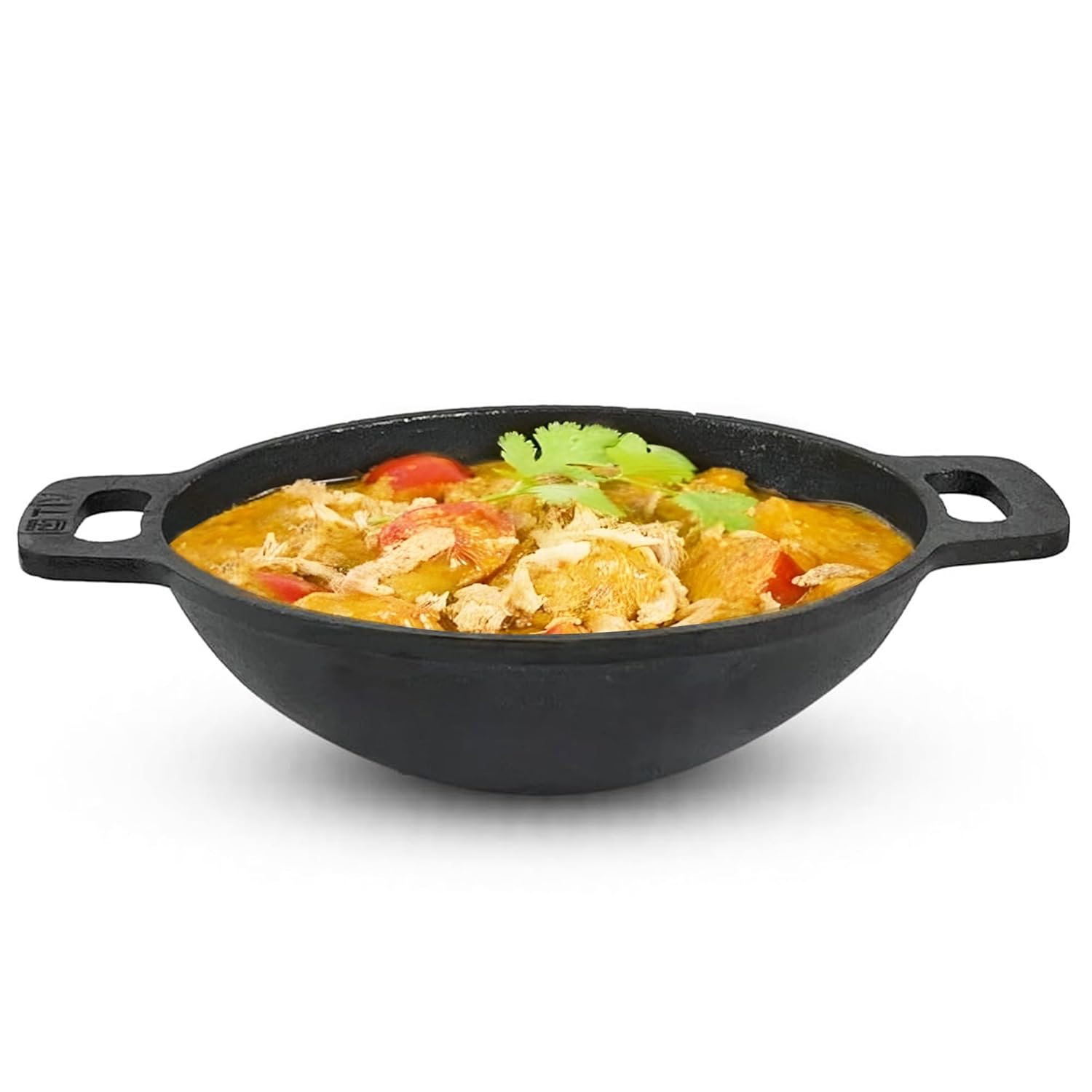 Pre-seasoned Black Cast Iron Kadai With Flat Handle | Medium, 25.6cm, 10 Inch, 2.4 Liters, 2.5 Kg | Naturally Nonstick Wok Model Kadhai, 100% Pure & Toxin-free, No Chemical Coating