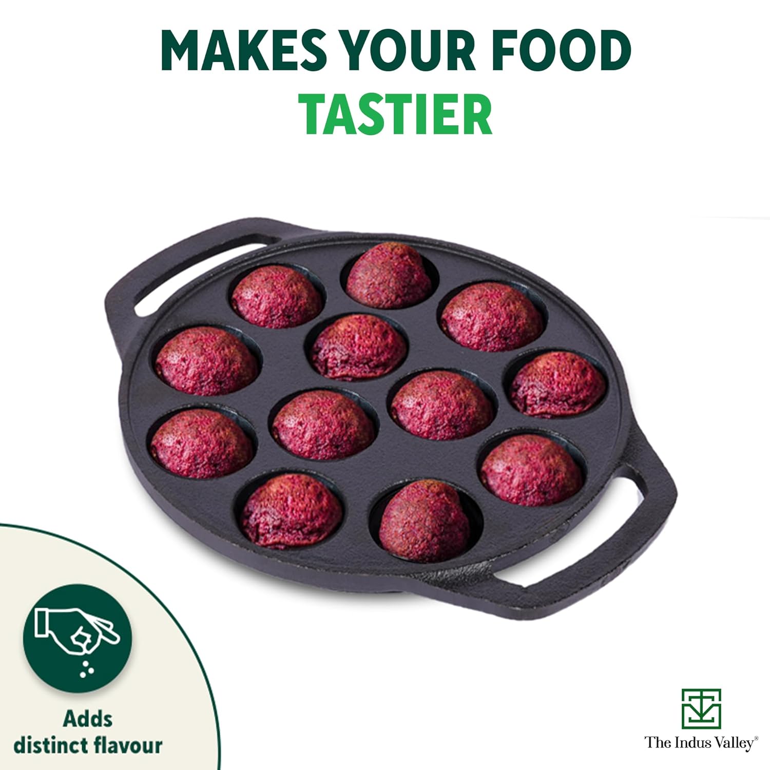 Pre-seasoned Black Cast Iron Paniyaram Pan With Spatula | Medium, 12 Pits, 8.3 Inch, 21 Cm, 2 Kg | Induction Friendly | Nonstick Appe Or Paddu Pan, 100% Pure & Toxin-free, No Chemical Coating