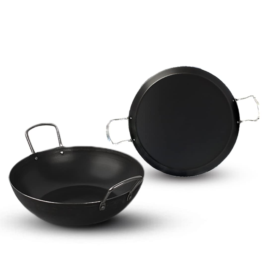 Pre-seasoned Black Iron Cookware Set | Kadai 24.6 Cm, 2.7 Liters + Tawa 28.5 Cm | Kitchen Cooking Combo Pots & Pans Set Of 2 Pcs | Naturally Nonstick