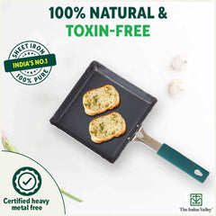 Pre-seasoned Iron Square Omlette Tawa With Bakelite Handle | Very Small, 14cm, 5.5 Inch, 0.35 Kg | Induction Friendly | Pre-seasoned Fry Pan, 100% Pure & Toxin-free, No Chemical Coating