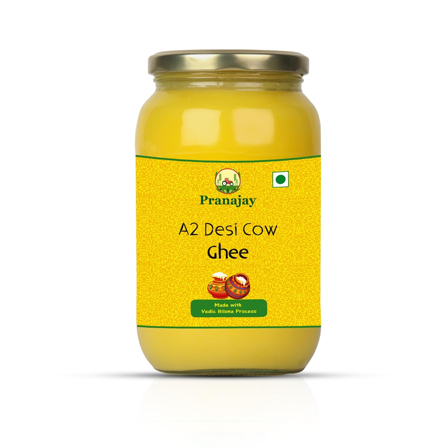 Premium A2 Desi Cow Ghee By Pranajay | Highly Nutritious & Healthy Vedic Bilona Method Desi Ghee Good For Bakes Cookies | (500ml) 16.9 Ounce | Jar Pack