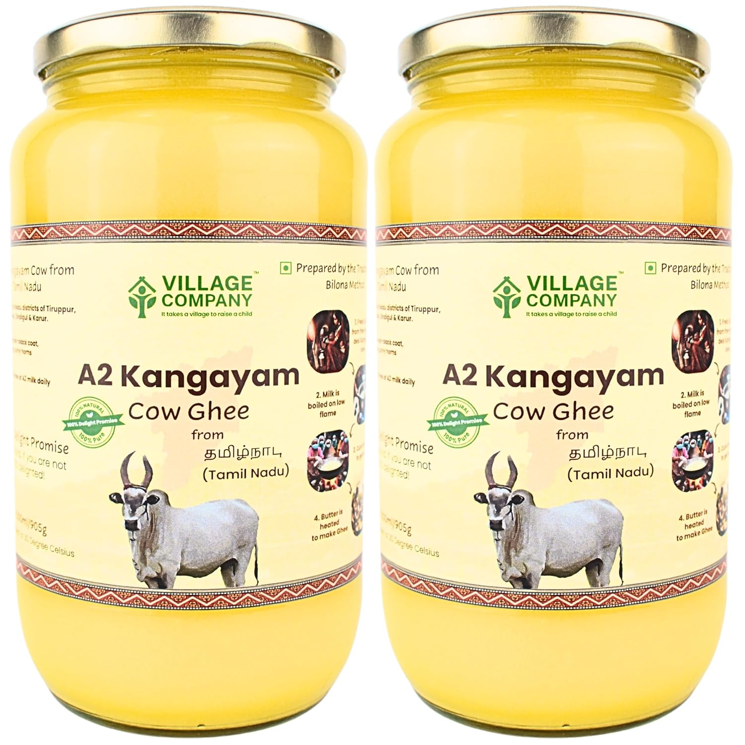 Premium A2 Kangayam Cow Ghee By Village Company | Rich In Nutrients Calcium & Iron Pure Healthy Desi Cow Ghee Good For Glowing Skin | 2 Litre (1 Litr * 2) 67.6 Ounce | Jar Pack