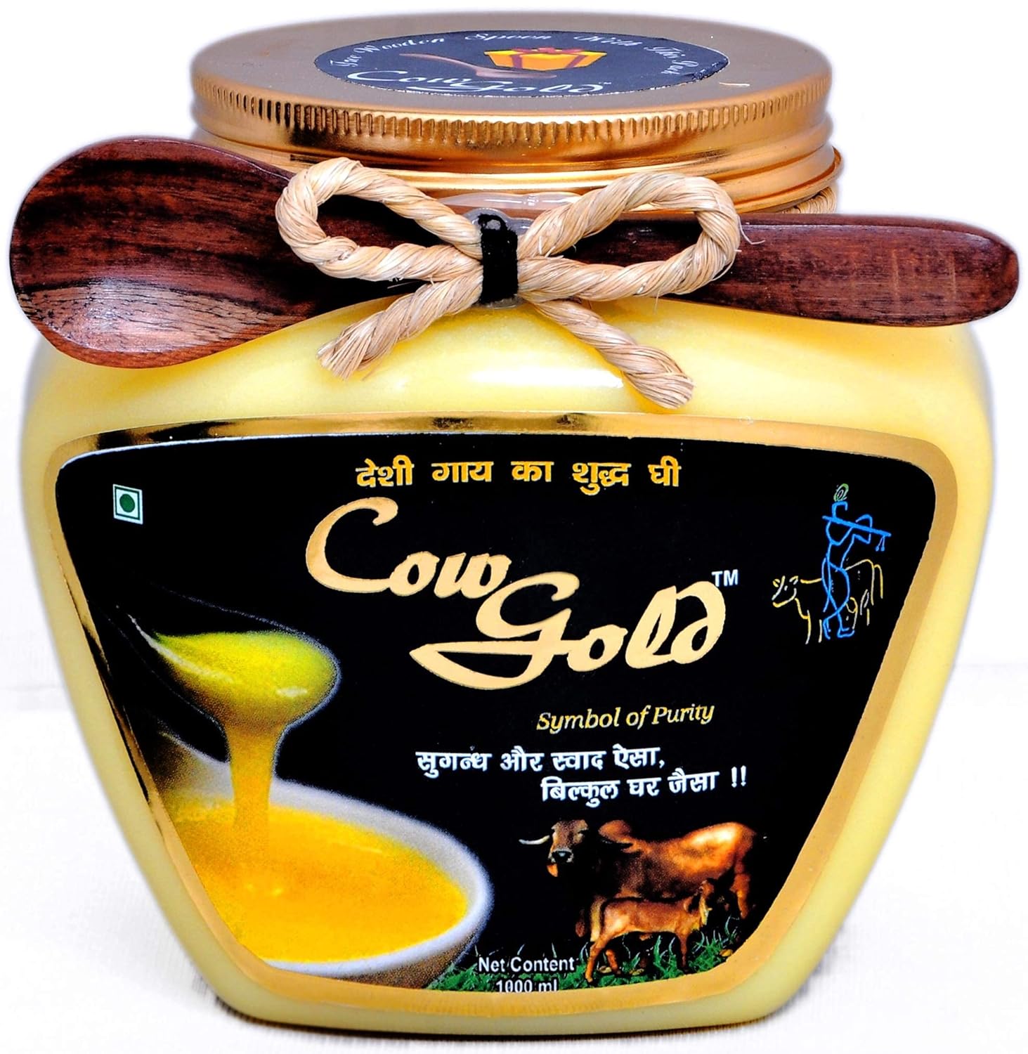 Premium Desi Cow A2 Ghee By Cow Gold | (Sahiwal & Rathi Cow) Bilona Method Pure Desi Cow Ghee Good For Hair & Eyes | (1 Litr) 33.8 Ounce | Jar Pack