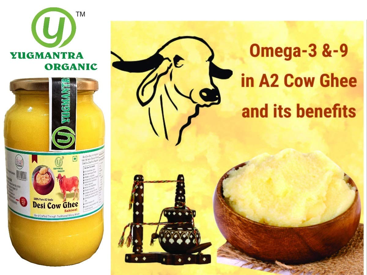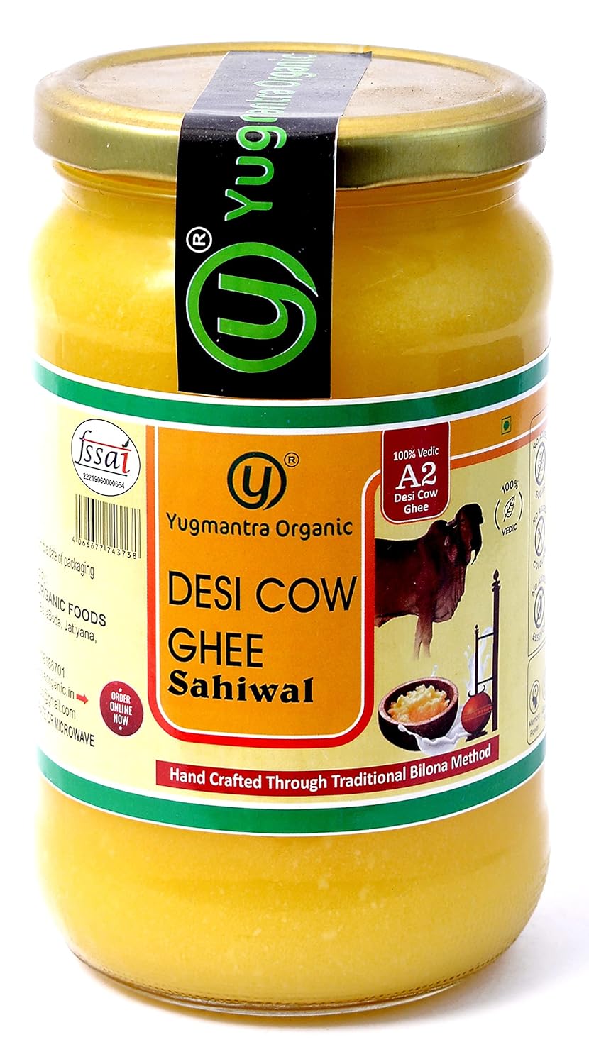 Premium Desi Sahiwal Cow Ghee By Yugmantra Organic Foods | Healthy & Delicious Desi Ghee Perfect For Weight Managements | (600ml) 20.2 | Jar Pack