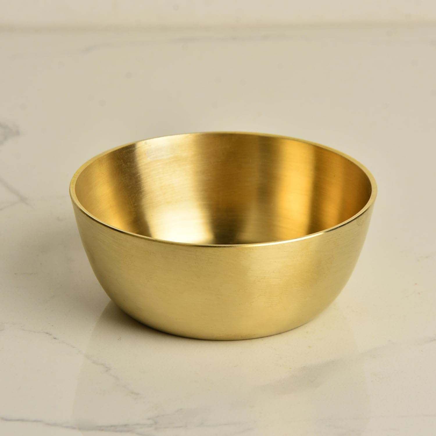 Premium Pure Brass Heavy Bowl For Eating | Diameter - 4 Inches, 200ml, 190 Gm, Matte Finish, Golden Color | Peetal Katori For Pooja