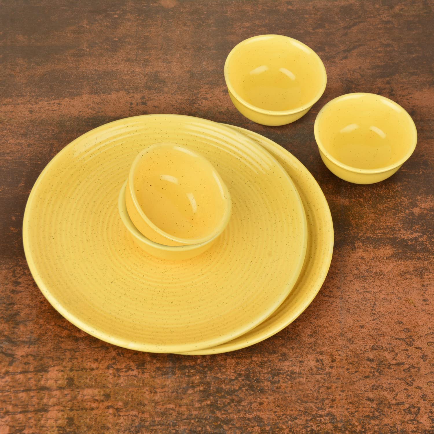 Premium Ribbed Ceramic 2 Dinner Serving Plate With 4 Dinner Bowls, Set Of 6 - Yellow, Plate Diameter: 10 Inches | Plates & Bowls Set - Golden Glow Collection