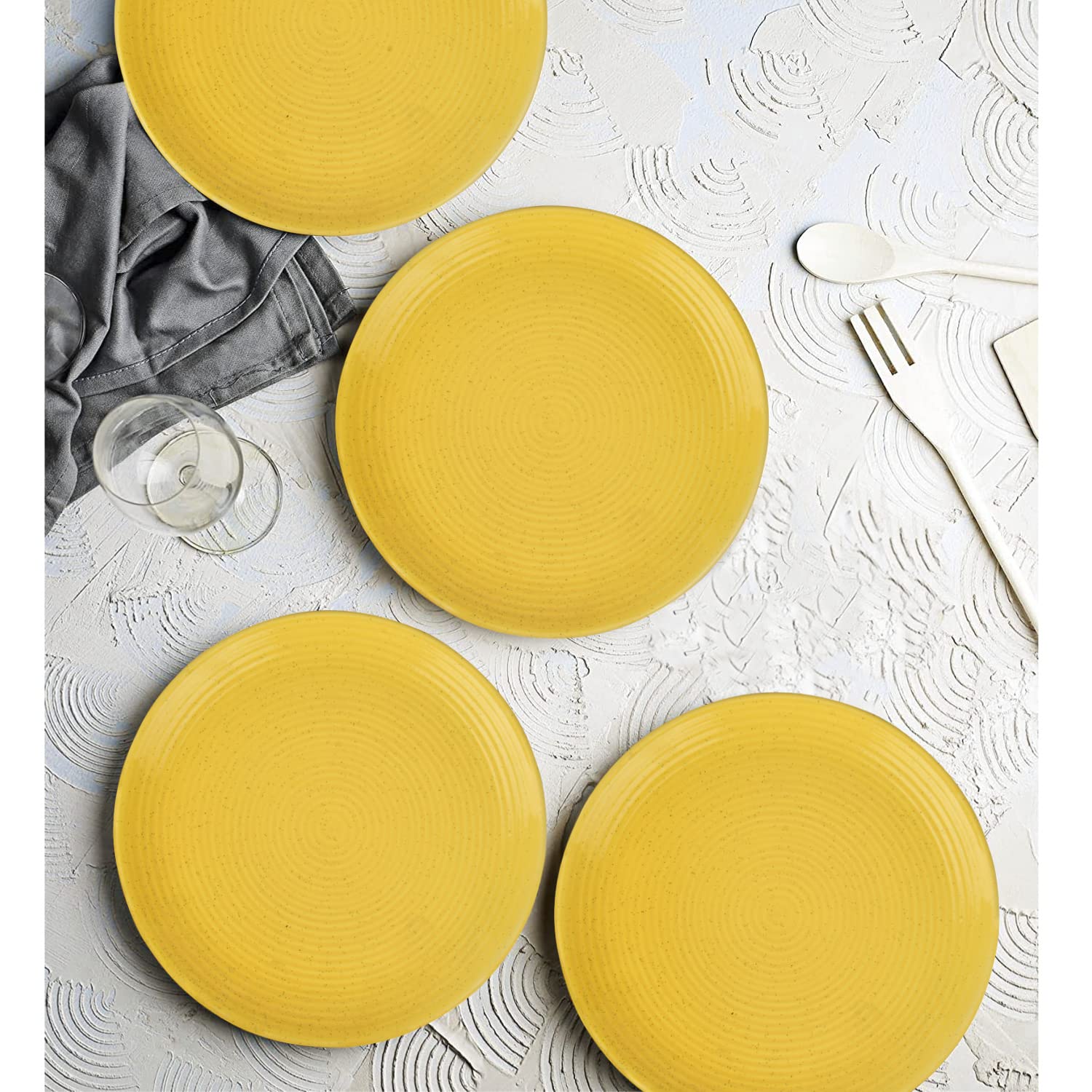Premium Ribbed Ceramic Dinner Serving Plates Set Of 4 - Yellow, Diameter: 10 Inches | Full Plates - Golden Glow Collection