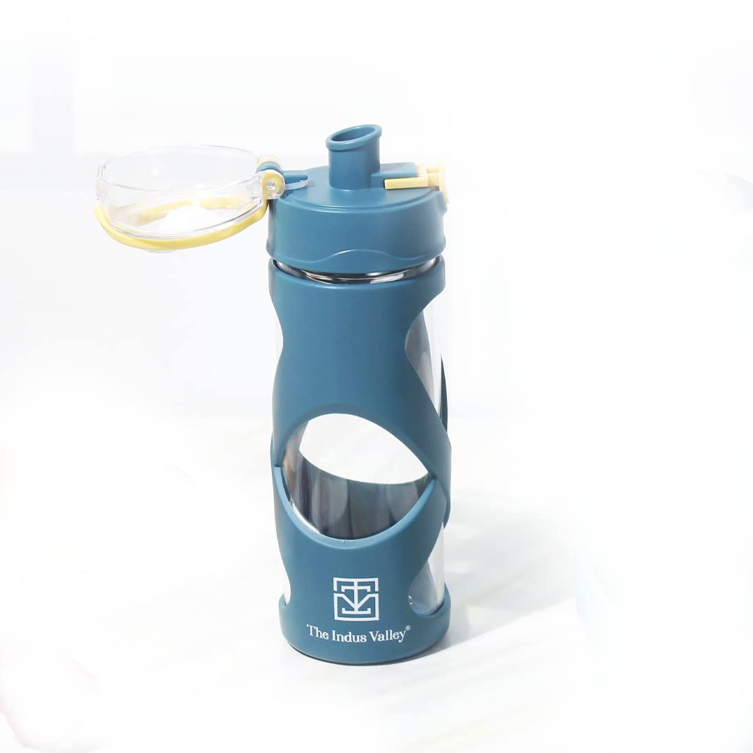 Pro-hydro Borosilicate Glass Water Bottle For School, College, Office, Gym | Dark Blue, 500ml | Leak Proof, Bpa-free, Anti-slip