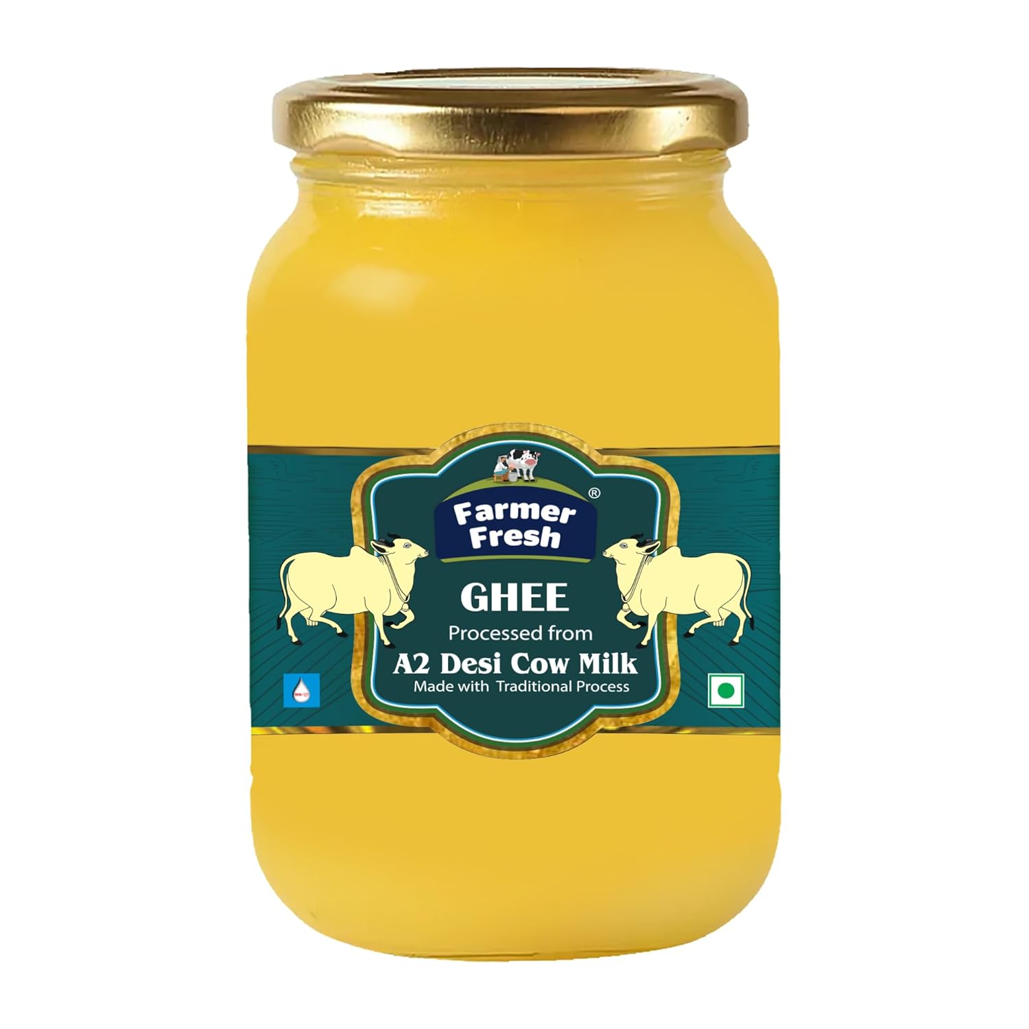 Pure A2 Desi Cow Ghee By Farmer Fresh | Highly Nutritious Rich Flavor & Ayurvedic Benefits Pure Desi Ghee For Good Health | (1 Litr) 33.8 Ounce | Jar Pack
