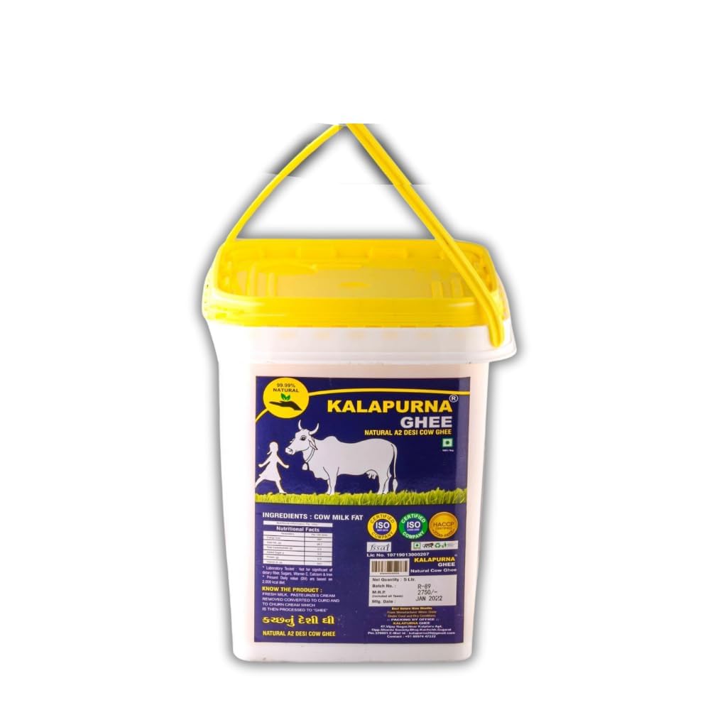 Pure A2 Desi Cow Ghee By Kalapurna Ghee | Delicious & Nutritious Healthy Desi Cow Ghee For Overall Health | (5 Litr) 169.0 Ounce | Jar Pack