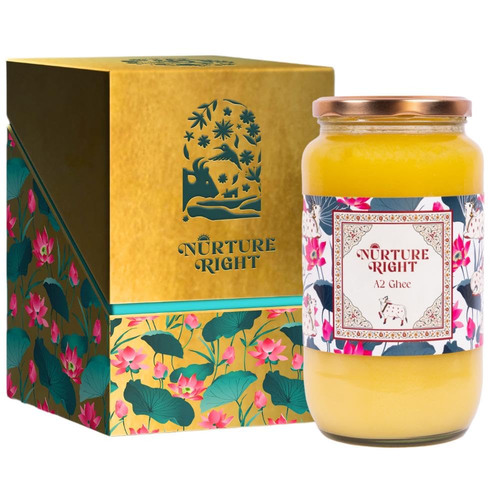 Pure A2 Desi Gir Cow Ghee By Nurture Right | Nourishing, Natural & Healthy Desi Ghee Perfect For Dishes | (1 Litr) 33.8 Ounce | Jar Pack
