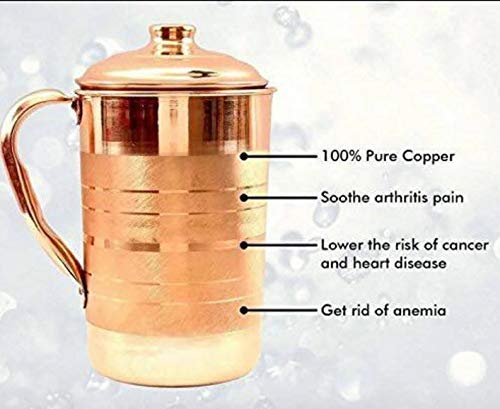 On the Occasion of festive season etc. Our Copper Water Jug is perfect for everyone and ideal for those with an active lifestyle. Since copper is naturally anti-bacterial and naturally self-sterilizing and does not require as much cleaning as other water utensils. The mouth is plenty big enough to fit ice and all your fruit and infusion fillers of choice! Drink from it your way. Can I put hot drinks in my pitcher? We donāt recommend putting hot drinks in this pitcher, due to how quickly this high-grade copper will take on the temperature of its contents. We recommend you stick to the beverages that are meant to be enjoyed super cold! Is this pitcher dishwasher safe? Due to this jug being 100% pure copper, it is NOT dishwasher friendly. Donāt spoil its beauty, hand wash every time.