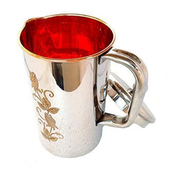 Pure Copper Jug Water Pitcher Flower Print Outside Stainless Steel Utensils - Inside Copper For Ayurveda Healing Capacity 1.5 Ltr. Approx. (Print May Very)