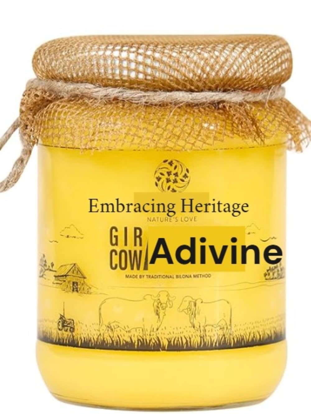 Pure Desi Gir Cow Ghee By Adivine | Traditional Bilona Method Healthy Desi Cow Ghee Good For Reduces Joint Pain | (500ml) 16.9 Ounce | Jar Pack