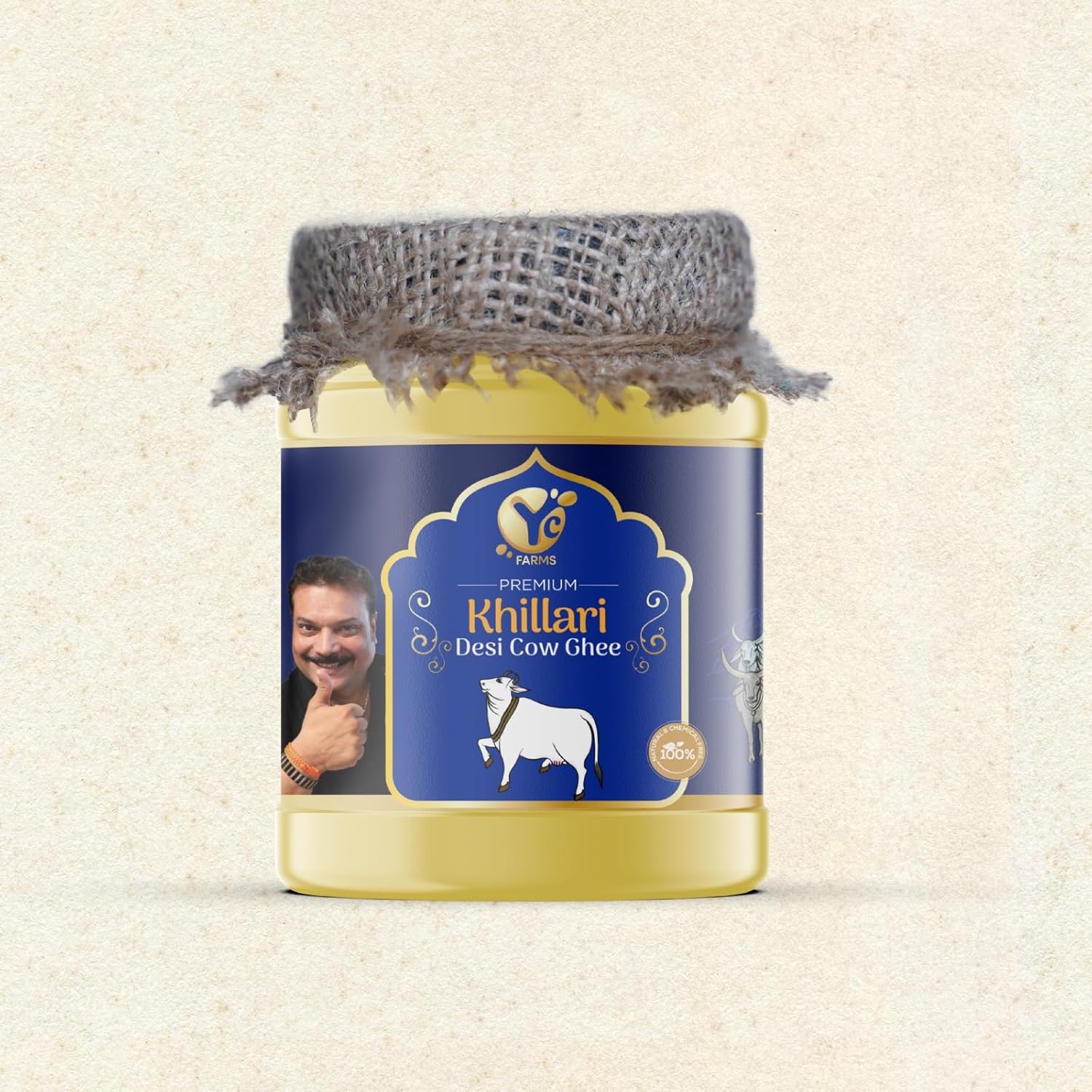 Pure Khillari Desi Cow Ghee By Y C Farms | Natural & Healthy Fragrance Belona Cow Ghee Perfect For Dishes | (330ml) 11.1 Ounce | Jar Pack