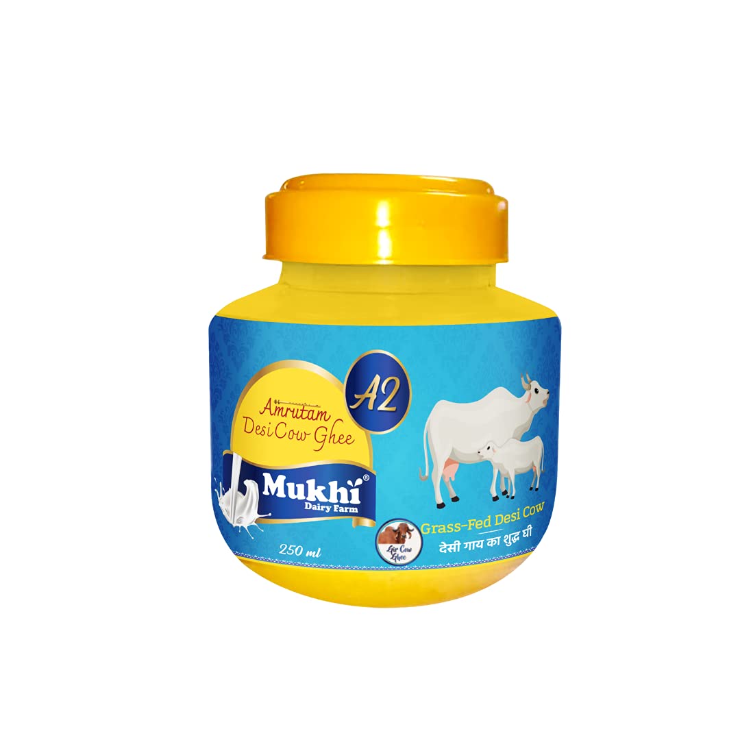 Pure Mukhia A2 Desi Cow Ghee By Amrutam | High In Protein Fiber Healthy & Nutrients Pure Desi Ghee Good For Body Joint Pain | (250ml) 8.4 Ounce | Jar Pack