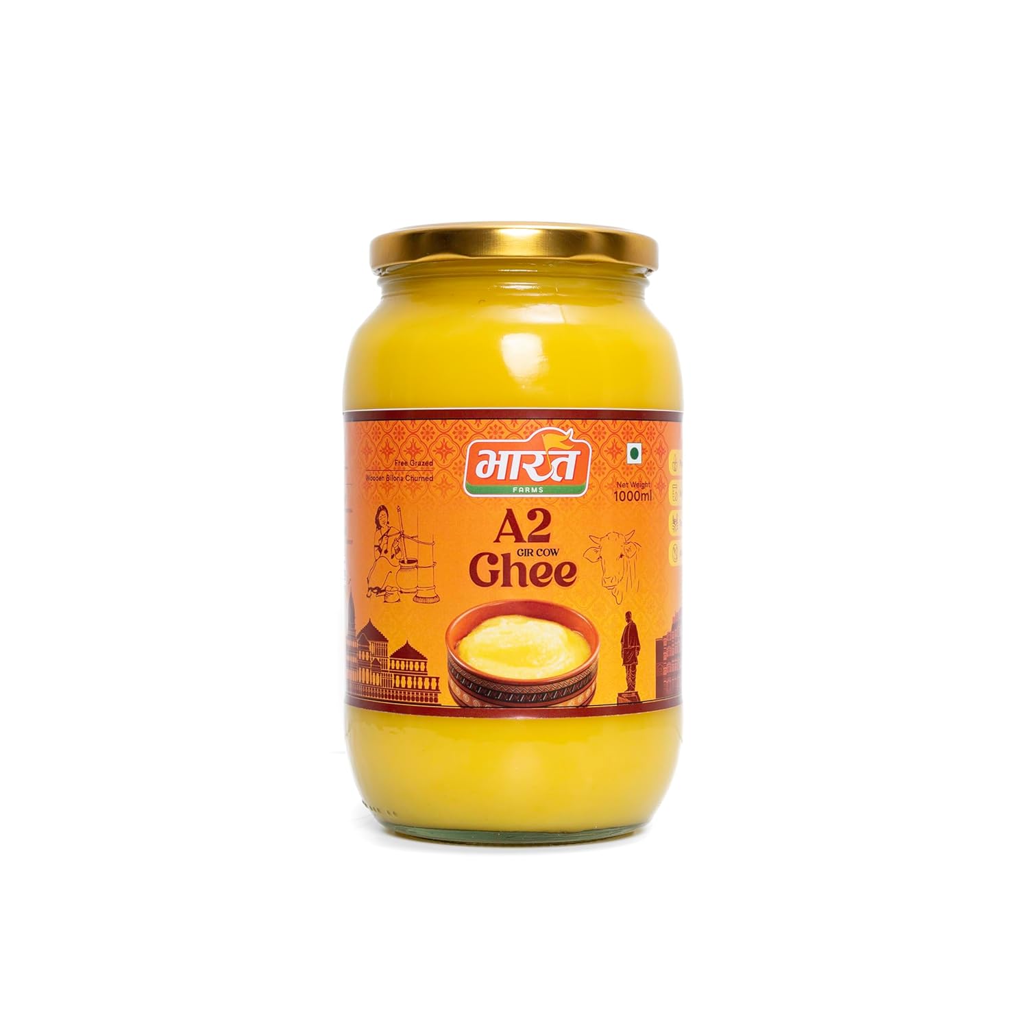 Pure Natural A2 Gir Cow Ghee By Bharatfarms | Traditional Curd Churned Vedic Bilona Method Danedar Ghee For Supports Digestion | (1 Litr) 33.8 Ounce | Jar Pack