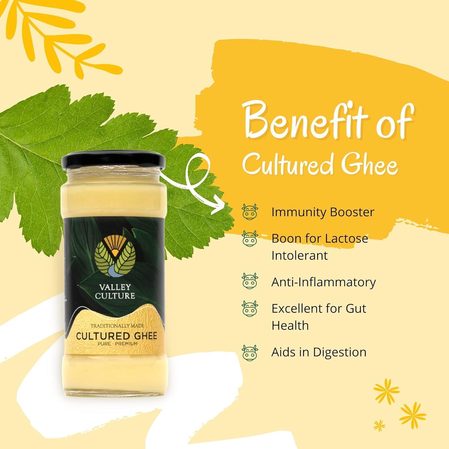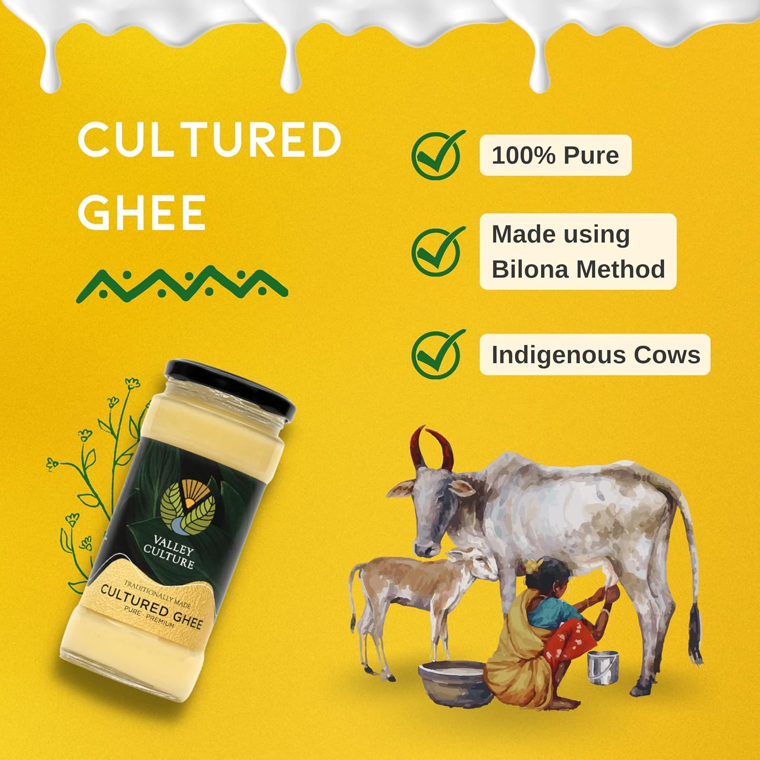 About: Made Using Traditional Bilona Method: Our Cultured Ghee Is Made Using The Traditional Bilona Method, Which Is A Time-Honored Method Of Preparing Ghee That Results In A Rich And Flavorful Product.