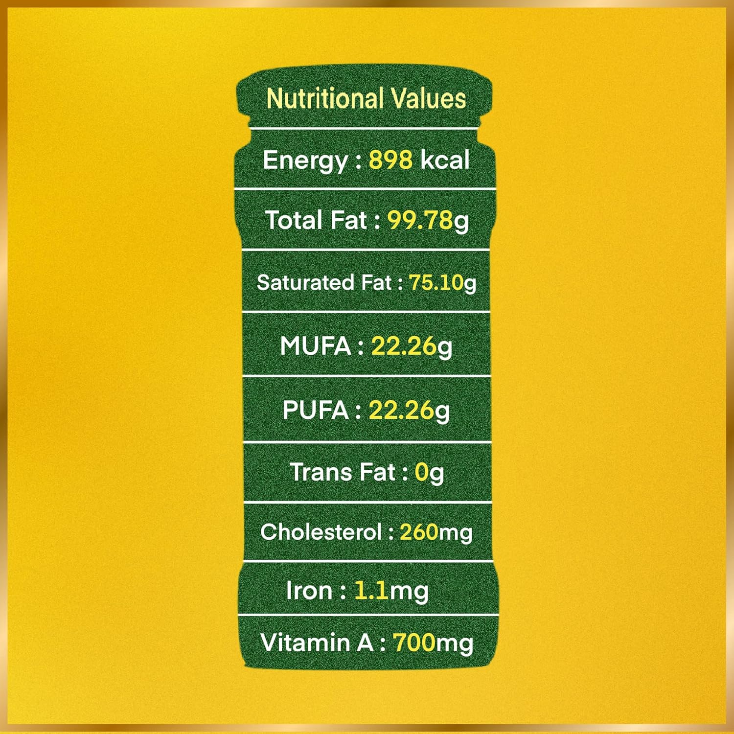 Benefits: Perfect For Lactose-Intolerant Individuals And Those Seeking To Improve Gut Health: Our Ghee Is Prepared By Removing The Milk Solids, Making It A Healthy Alternative For Those Who Are Lactose Intolerant. It Also Contains Butyric Acid, Which Makes It Easily Digestible And Helps Maintain Good Gut Health.