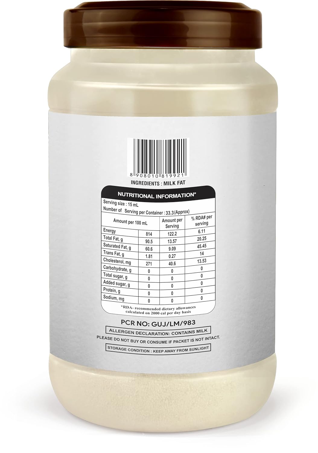 Ideal For Authentic Taste:Crafted From Pure Desi Buffalo Milk, This Ghee Undergoes A Meticulous 3.5-Hour Slow-Cooking Process, Gradually Escalating Temperatures To Yield An Authentic Aroma And Granular Texture Akin To Homemade Ghee.