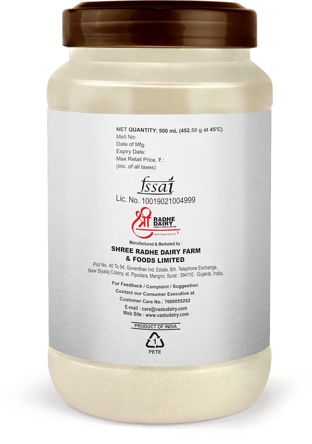 Pure Natural Gold Desi Ghee By Vastu | High I Protein Fiber Healthy Nutrients Desi Cow Ghee Good For Brain Health | (500ml) 16.9 Ounce | | Jar Pack