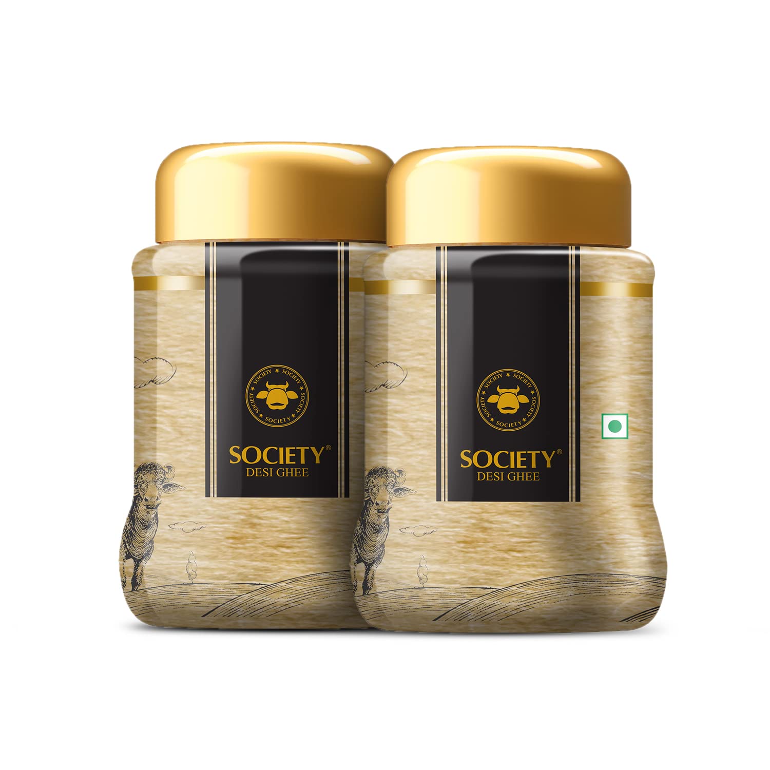Pure Organic Desi Cow Ghee By Society | Rich Aroma & Nutritious Healthy Desi Cow Ghee For Enhances Brain Function | 1 Litre (500ml * 2) 33.8 Ounce | Jar Pack