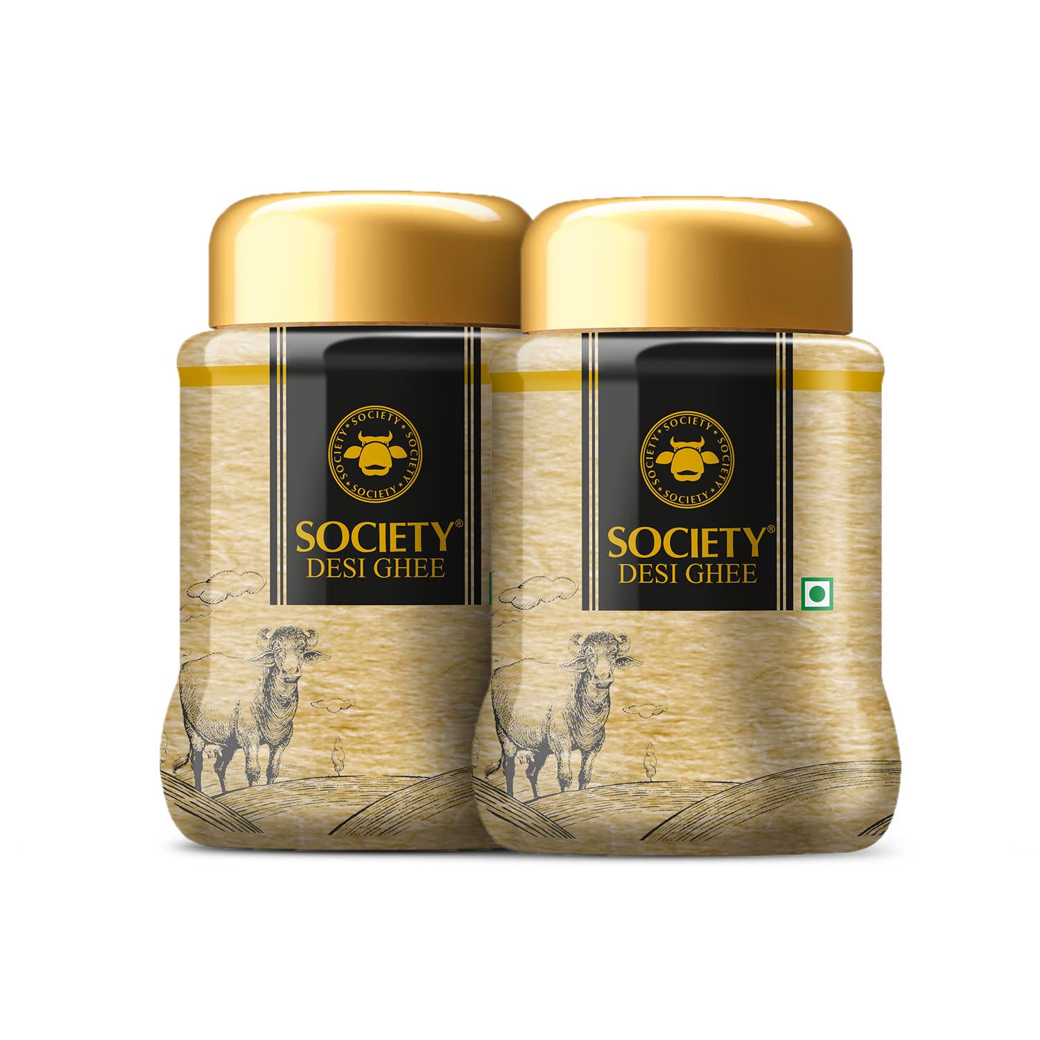 Pure Organic Desi Cow Ghee By Society | Rich Aroma & Nutritious Healthy Desi Cow Ghee Perfect Taste For Your Food | 2 Litre (1 Litr * 2) 67.6 Ounce | Jar Pack