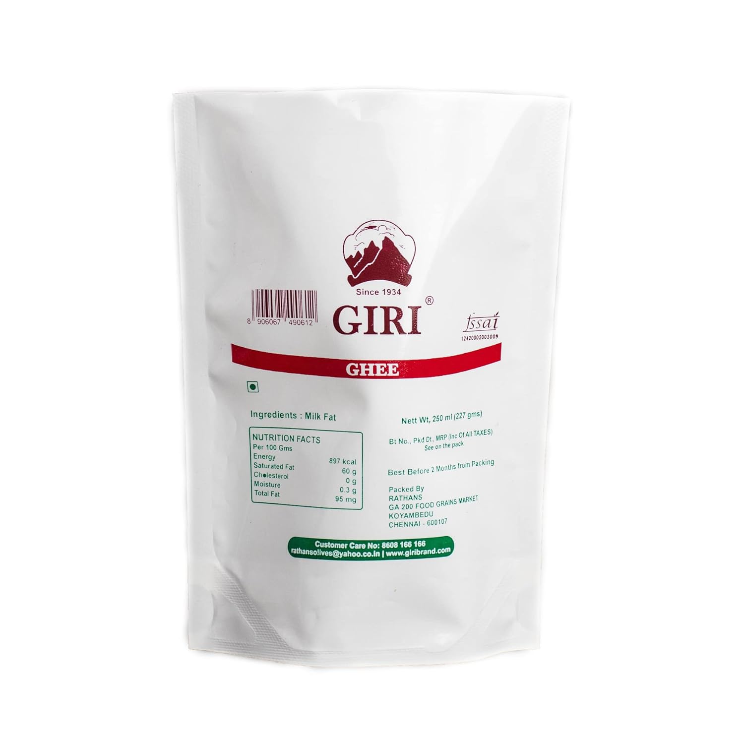 Pure Organic Desi Ghee By Giri | Made With Curd Churned Bilona Method Source Of Essential Vitamins Desi Cow Ghee | (250ml) 8.4 Ounce | Pouch Pack