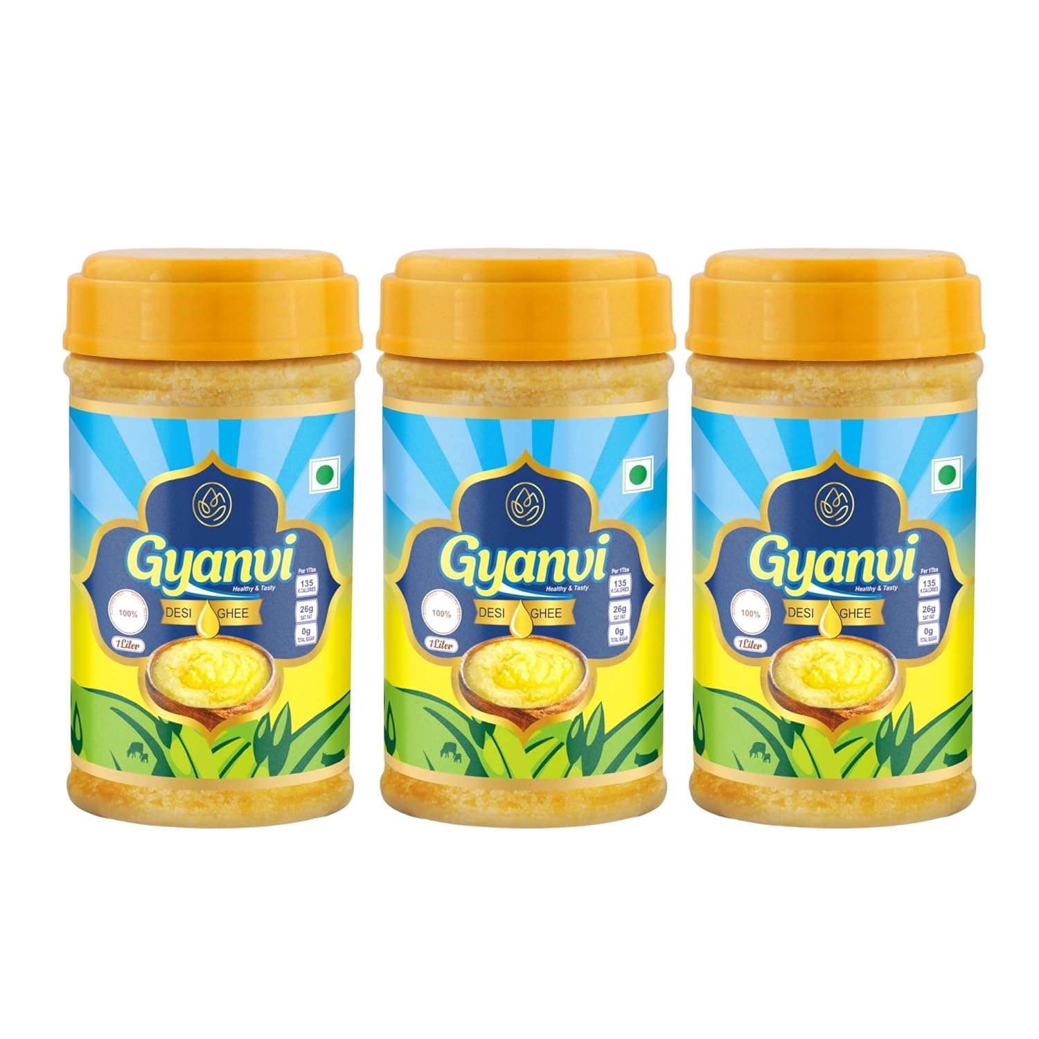 Pure Organic Desi Ghee By Gyanvi | Highly & Nutritious Pure Desi Ghee For Used For Sweets | 3 Litre (1 Litr * 3) 101.4 Ounce | Plastic Bottle