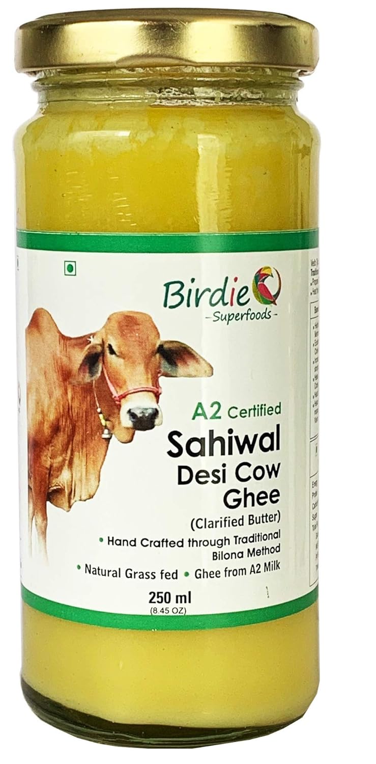 Pure Premium A2 Certified Sahiwal Desi Cow Ghee By Birdie Superfoods | Rich In Nutrients Flavor Healthy Desi Ghee Perfect For Improve Body Immunity | (250ml) 8.4 Ounce | Glass Bottle
