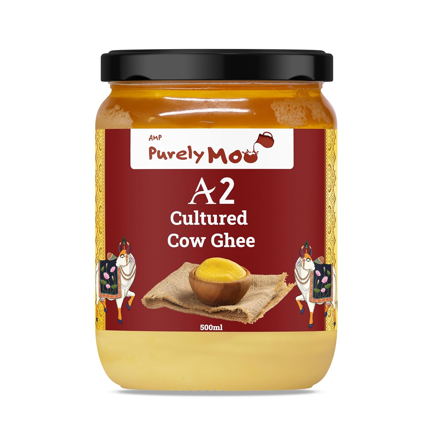 Pure Premium A2 Cultured Gir Cow Ghee By Amp Purely Moo | Natural & Healthy Desi A2 Cow Ghee Good For Laddus | (500ml) 16.9 Ounce | Jar Pack