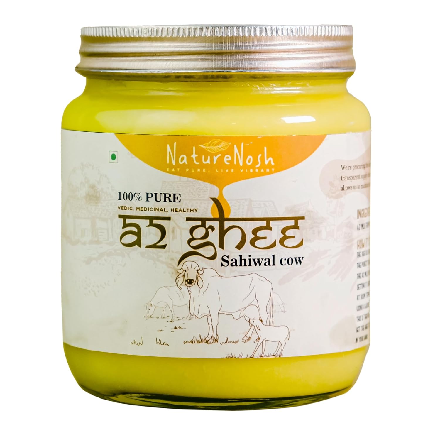 Pure Premium A2 Sahiwal Cow Desi Ghee By Nature Nosh | Natural & Healthy Vedic Bilona Method Curd Churned Cow Desi Ghee | (500ml) 16.9 Ounce | Jar Pack