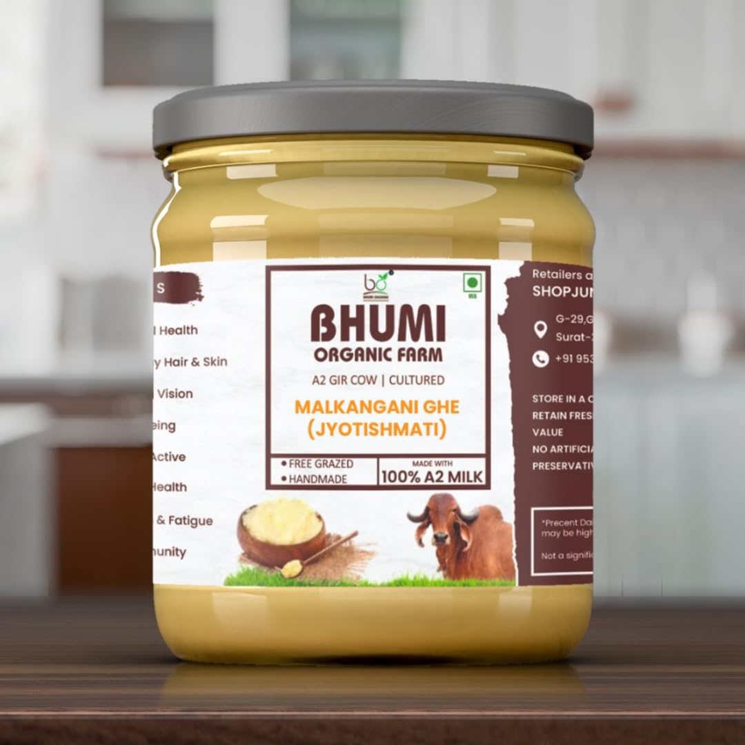 Pure Premium Malkangani Ghee (Jyotishmati) By Bhumi Organic Farm | Naturally & Healthy Bilona Method Cow Ghee Perfect For Body Joint Pain | (500ml) 16.9 Ounce | Jar Pack