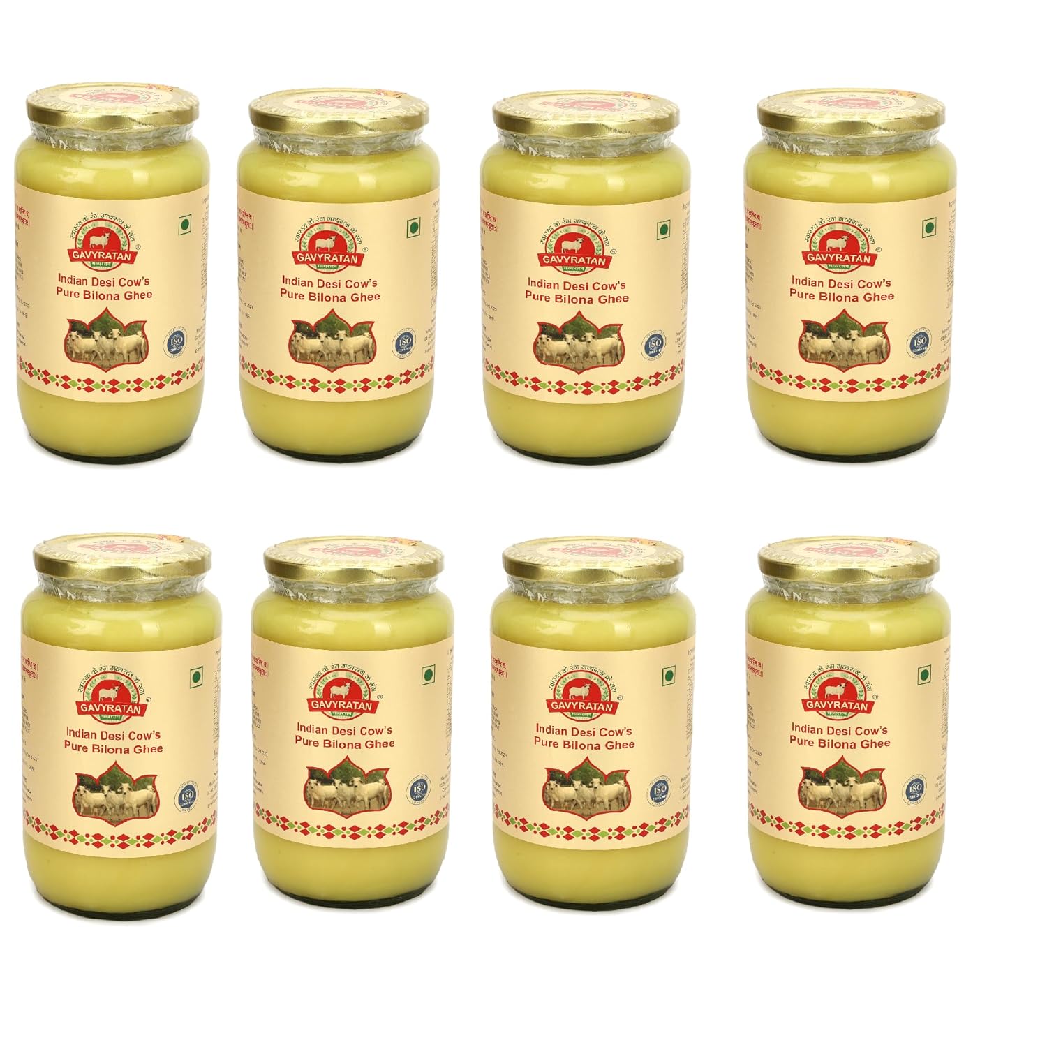 Pure Shudh Indian Desi Cow Bilona Ghee By Gavyratan | Made Using Traditional Bilona Method Pure Desi Ghee Good For Overall Health | 4 Litre (500ml * 8) 135.2 Ounce | Jar Pack