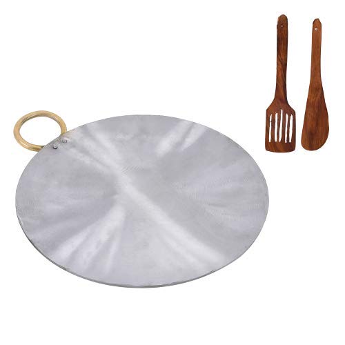 Pure Silver Cast Iron Dosa Tawa, Chilla Pan, Uttapam Tawa For Making Dosa, Uttapam, Chilla,etc. With Handle | Round, Size- 36 X 30 Cm + Free 2 Wooden Spatula