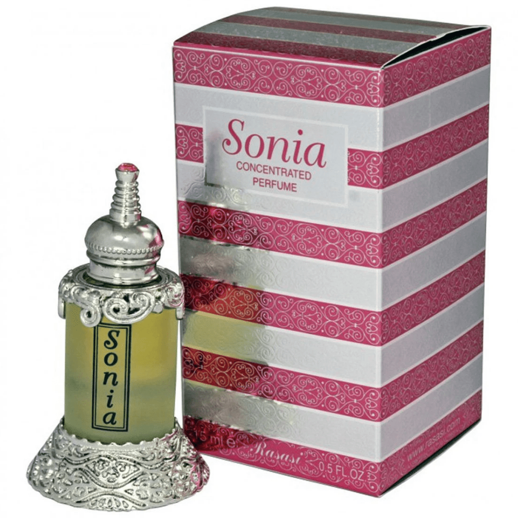 Sonia which defines femininity with sensual and soothing notes. It is a feel good product which creates a ready to wear fashionable image with its fullness and vibrancy. Sonia by Rasasi spreads a fine, creamy elegance. The top note opens fresh and floral with bergamot, saffron and roses. Jasmine and sandalwood give the perfume a woody and floral heart note. The base of white musk and amber completes the fragrance softly and gently. The bottle design and outer packaging creates a picture of perfection at its best.