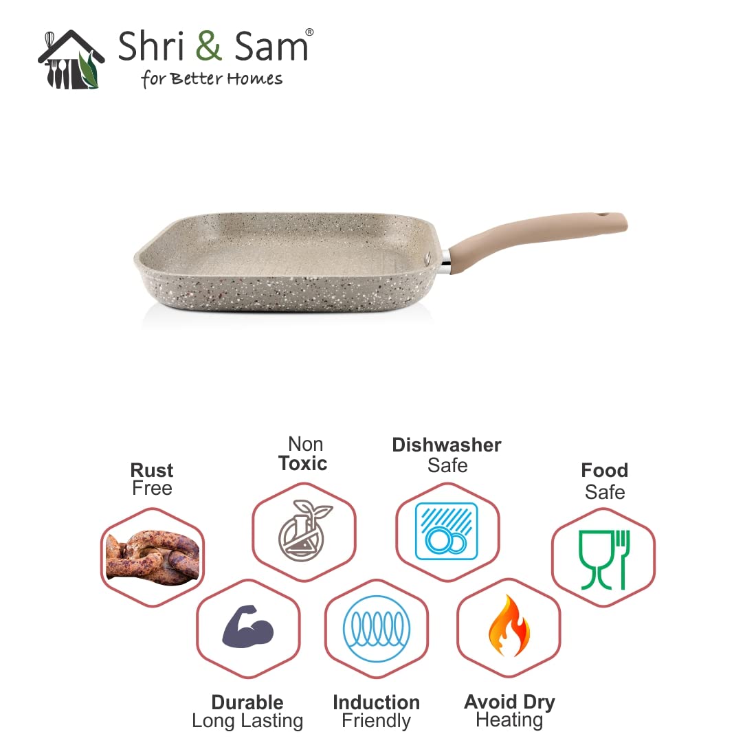 Rockline 6 Layers Non-stick Square Grill Pan, 26 Cm, 1900ml - Multi Dotted Color, All Cooktop Friendly - Induction Stove Compatible