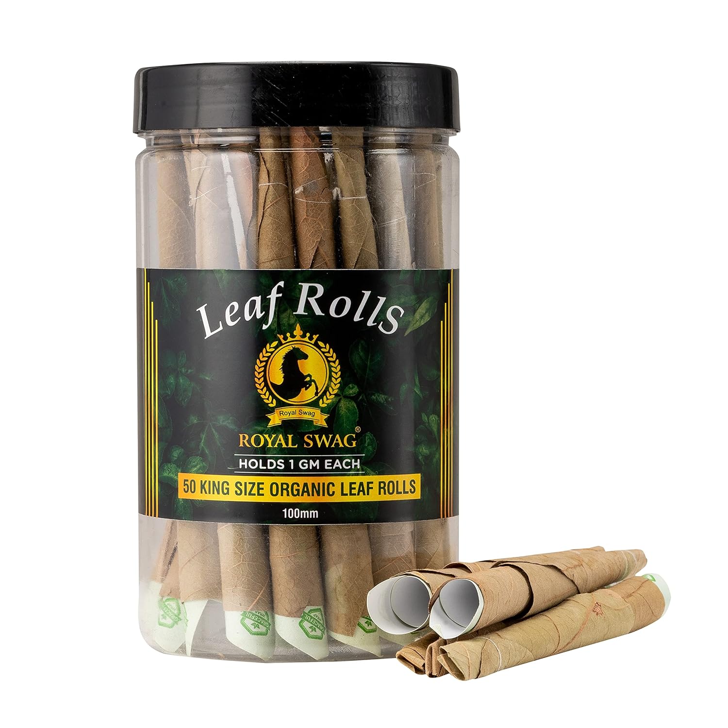 Royal Swag 100mm King Size Leaf Rolls Ready to Use Cones Jar Of 50 Pcs Pack with 1 filling stick, Super Slow Burning, Real Tendu Palm Leaf |Natural Toasted Palm Leaf Wrap|