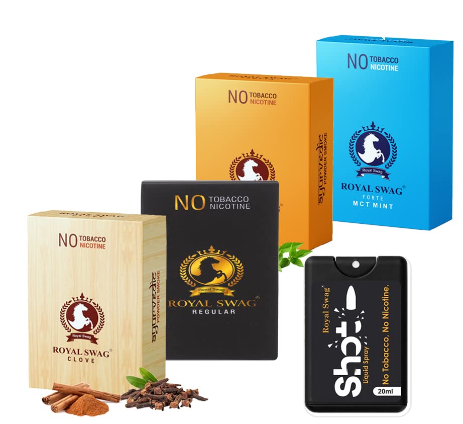 Royal Swag Ayurvedic Cigarette Nicotine and Tobacco Free Combo -10 Stick With 20ml Shot Frutta, Clove, Regular and Mint- Each 10