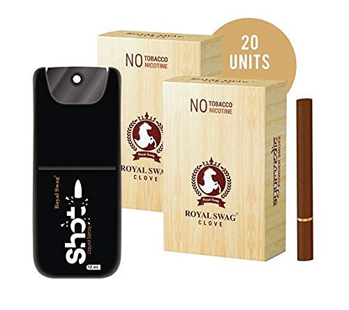 Royal Swag Ayurvedic & Herbal Cigarette, Clove Flavour Smoke For Relieve Stress And Mood Enhance Nicotine Free & Tobacco Free Cigarettes With Shot Helps In Quit Smoking - (20 Sticks, Small Shot -1)