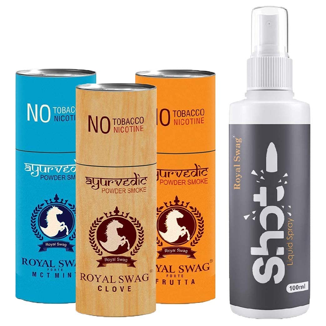 Royal Swag Ayurvedic & Herbal Cigarette, Combo Pack of Fruta, Clove, Mint Flavour Smoke (5 Stick Each) With 100ml Shot Tobacco Free Cigarettes Helps in Quit Smoking - (15 Sticks, 1 Shot)