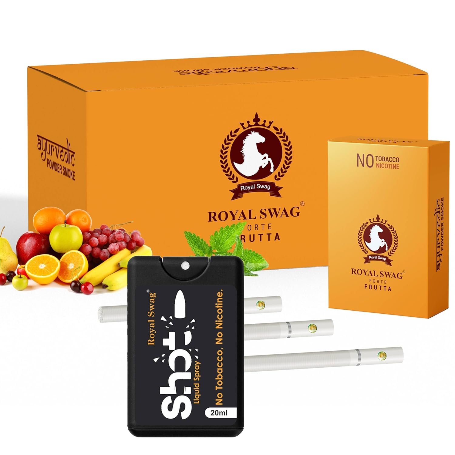 Royal Swag Ayurvedic & Herbal Cigarette, Frutta Flavour Smoke Tobacco Free Cigarettes Helps In Quit Smoking - 100 Sticks + 1 Shot