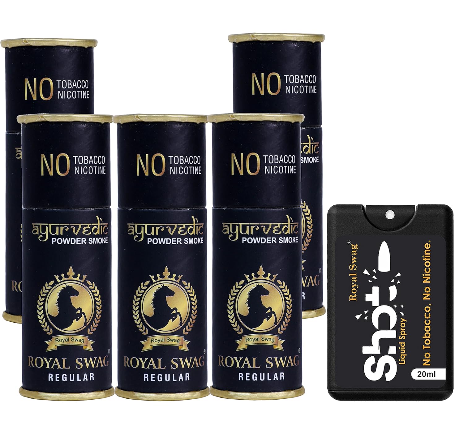 Royal Swagās Shot will help you to stop your craving of nicotine Use, Take Shotās 2 to 3 Spray in mouth and then Light up your cigarette after when you feel craving of nicotin