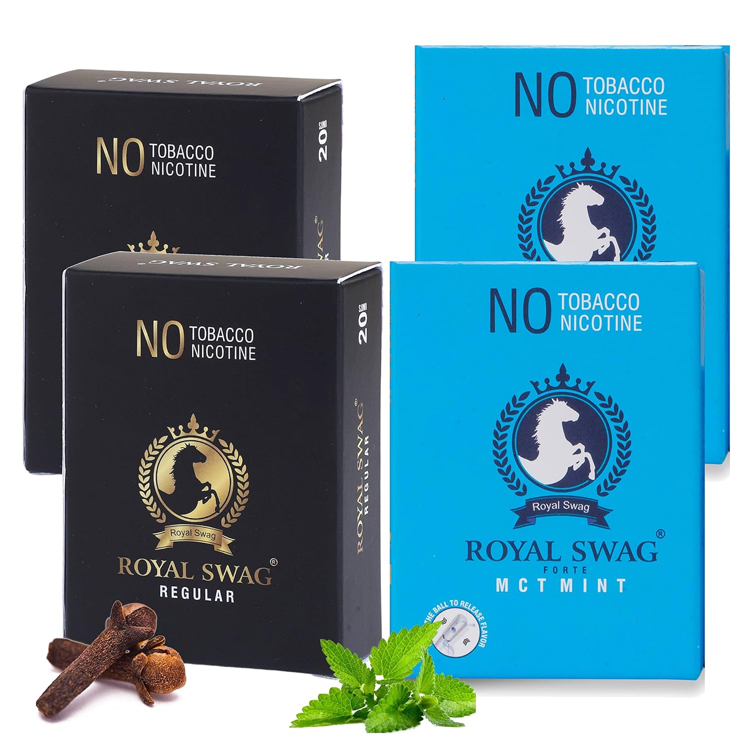 Royal Swag Herbal Cigarettes Mint, Clove Flavoured (80 Sticks) | 100% Tobacco Free & Nicotine Free (Tobacco Alternatives) Herbal Smokes Made With Ayurvedic & Natural Herbs Pack Of 80