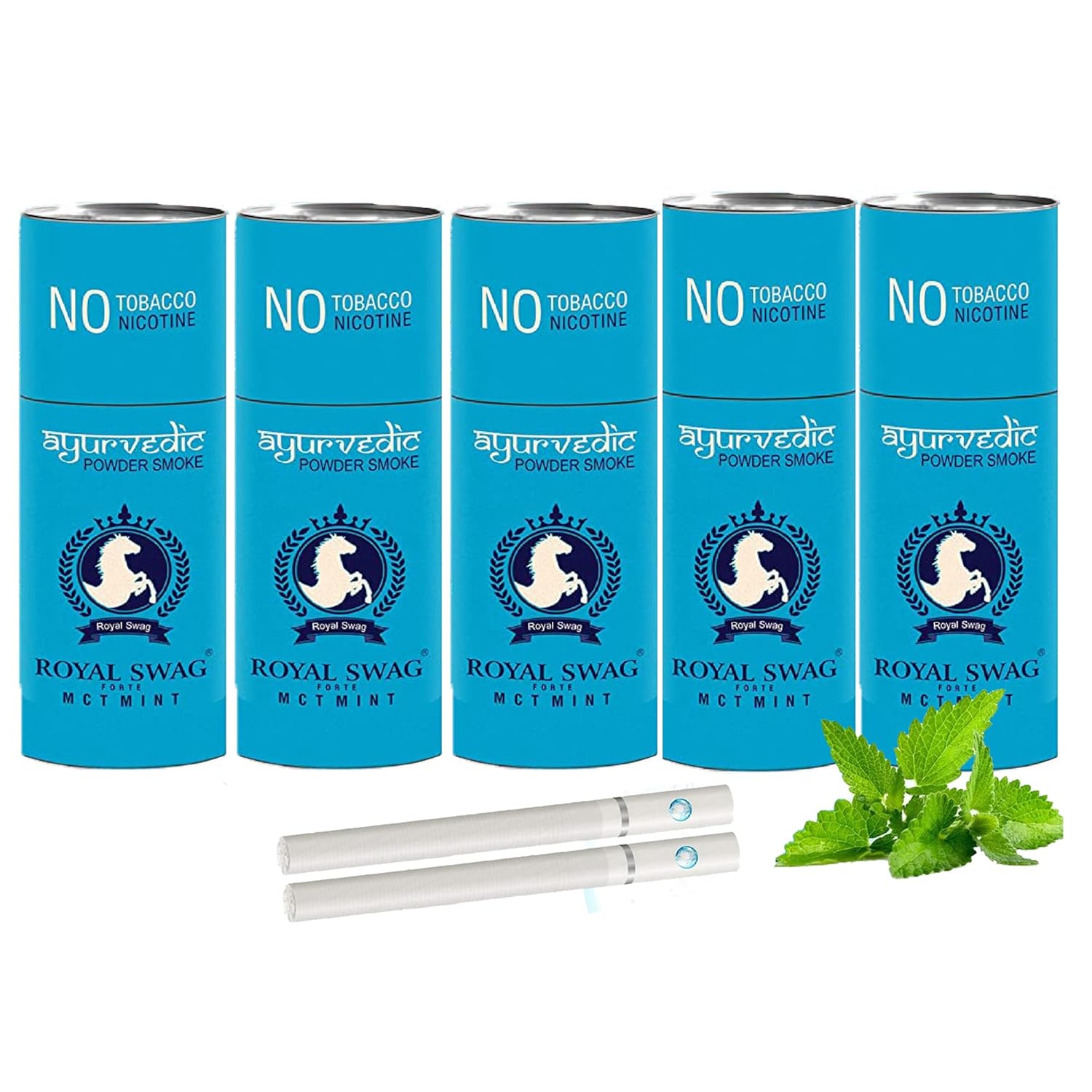 Royal Swag Ayurvedic Herbal Cigarettes 100% Tobacco & Nicotine Free Mint Flavour (5 Sticks) Smoking Cessation - (Pack Of 25 Sticks)