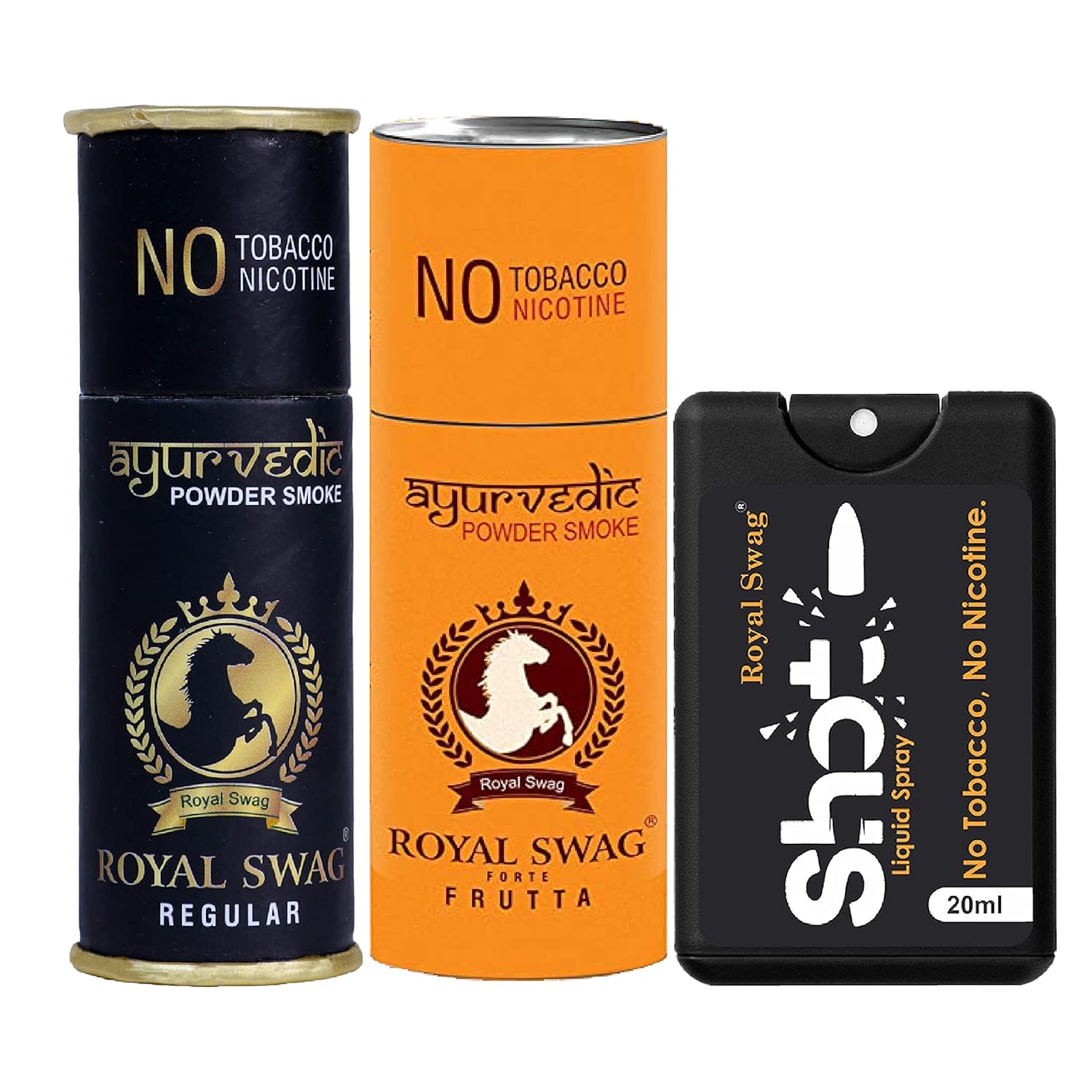 Royal Swag Ayurvedic & Herbal Cigarettes Regular Flavour & Frutta Flavour (05 Sticks Each) With 20ml Shot Anti Addiction Spray - (10 Sticks)