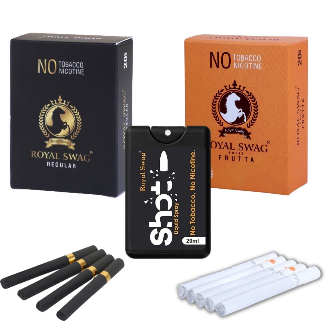 Royal Swag Herbal Cigarette Regular, Frutta Flavoured 40 Sticks 100% No Nicotine & No Tobacco - Smoking Cessation With 100% Natural 20ml Shot Anti Addiction Spray | Pack Of 40