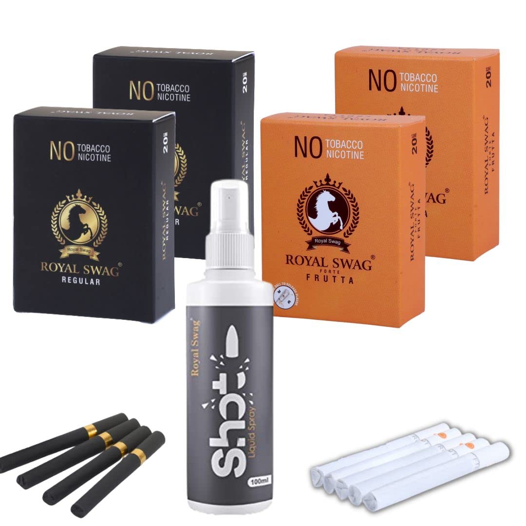 Royal Swag Herbal Cigarette Regular, Frutta Flavoured 80 Sticks 100% No Nicotine & No Tobacco - Smoking Cessation With Natural 100ml Shot Anti Addiction Spray | Pack Of 80