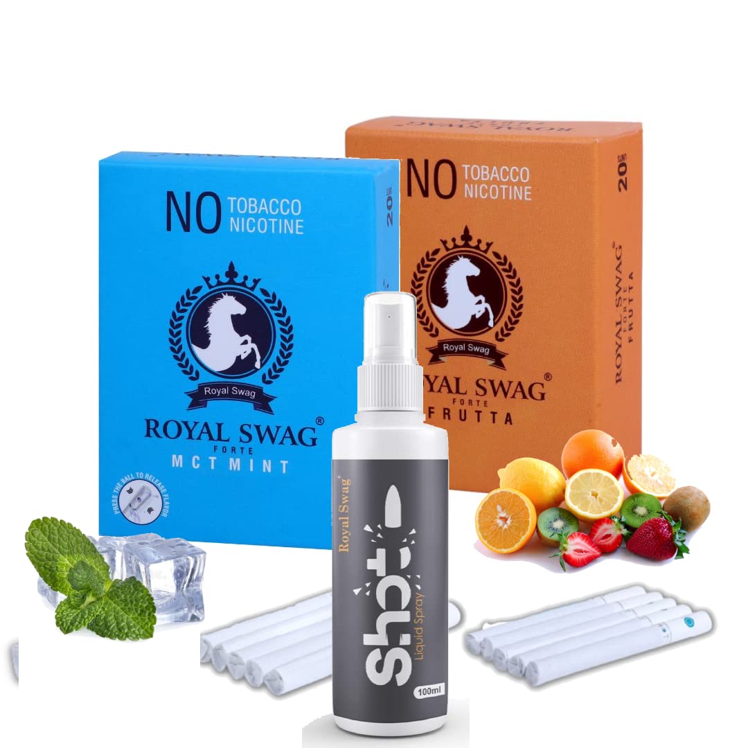 ROYAL SWAG Herbal Cigarettes Mint, Frutta Clove Flavoured 40 Sticks | 100% Tobacco Free & Nicotine Free Tobacco Alternatives Herbal Smokes(Pack Of 40) With 100ml Shot Anti Addiction Spray