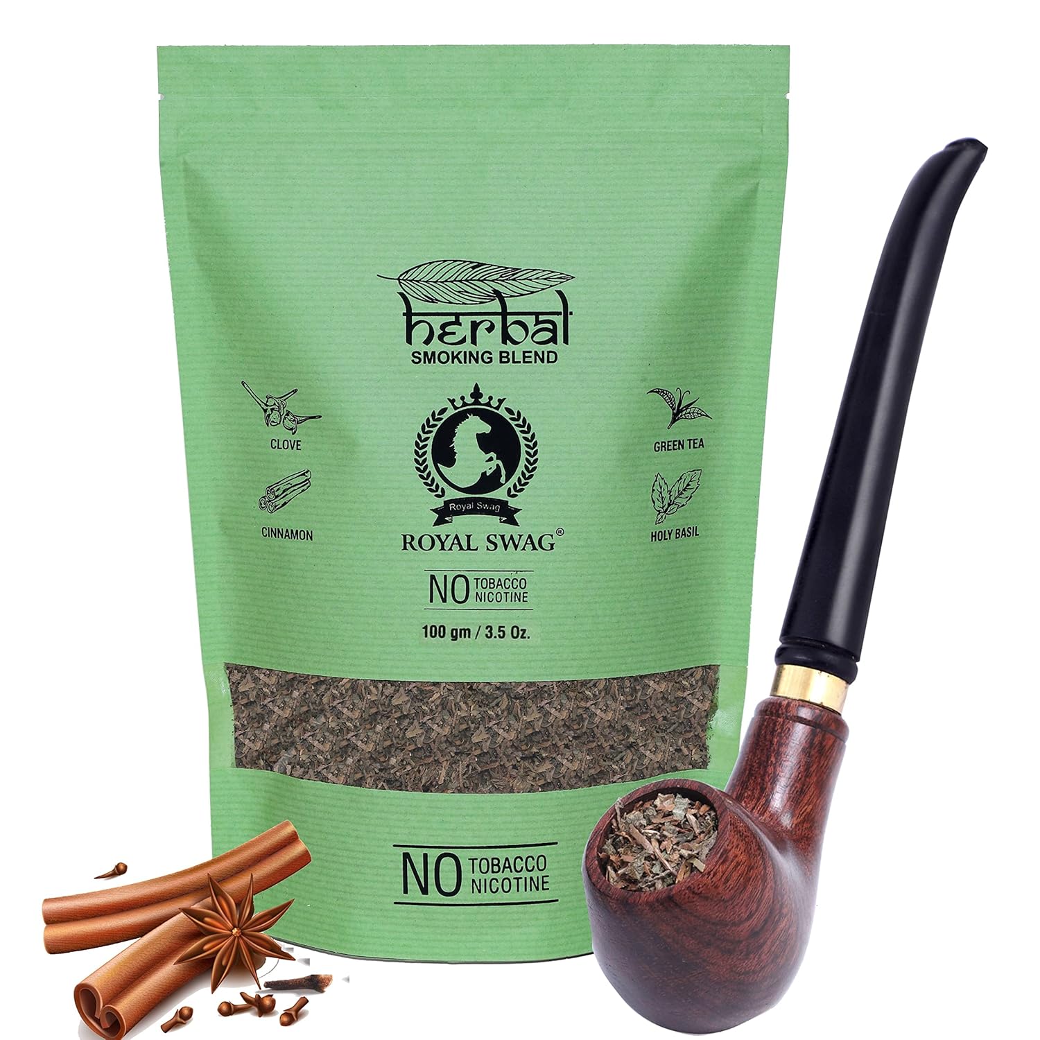 Royal Swag Tobacco & Nicotine Free Smoking Mixture Powder With 100% Natural Herbal Smoking Blend Of Clove 1 Pack - 100Gm With Wooden Pipe